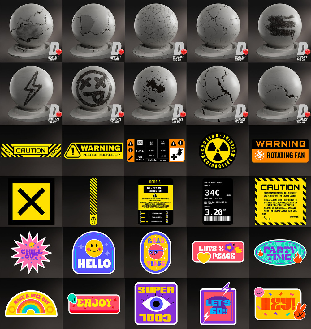 - Stacking: 50 + elements: Cracks, Shapes, Signs, Stickers.